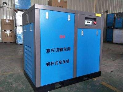 激光切割機的特點1.切割速度快,切口光滑平整,無毛刺。2.切割狹窄,變形小,切割表面材料不硬化。3.加工精度高,重復性好;4.數(shù)控編程簡單,加工范圍寬,無需開模,節(jié)省時間。激光切割機的這些特性決定了專用空氣壓縮機的重要性如何為激光切割機選擇空氣壓縮機?氣源成本由于氮和氧的成本比壓縮空氣的成本高均,并且氮和氧的價格逐年上升,使用空氣作為切削輔助氣體可以顯著降低生產(chǎn)成本。高壓氣源的作用1.冷卻防止材料硬化,即熱處理。2.氣壓吹出熔渣,使灰塵堵塞激光噴嘴,保護并延長其使用壽命。激光切割機對壓縮空氣源的要求激光切割機專用空壓機比較高,氣源不含水油,一般用戶配有四級過濾或五級過濾,旨在更好地保護激光切割機的使用壽命。如果進入切割頭的氣源含有水和油,則保護鏡片會在短時間內(nèi)模糊,影響切割質(zhì)量,如果不及時更換保護鏡,則可能會照射高功率光束并且切割頭內(nèi)的溫度可能升高。內(nèi)部鏡子可能已損壞。后處理安裝1.激光切割機的空氣壓縮機靠近激光切割機,低溫干燥機的過濾器依次連接。2.激光切割機空壓機遠離激光切割機,終端設有兩個過濾器,用于處理長距離管道中的殘渣和油。